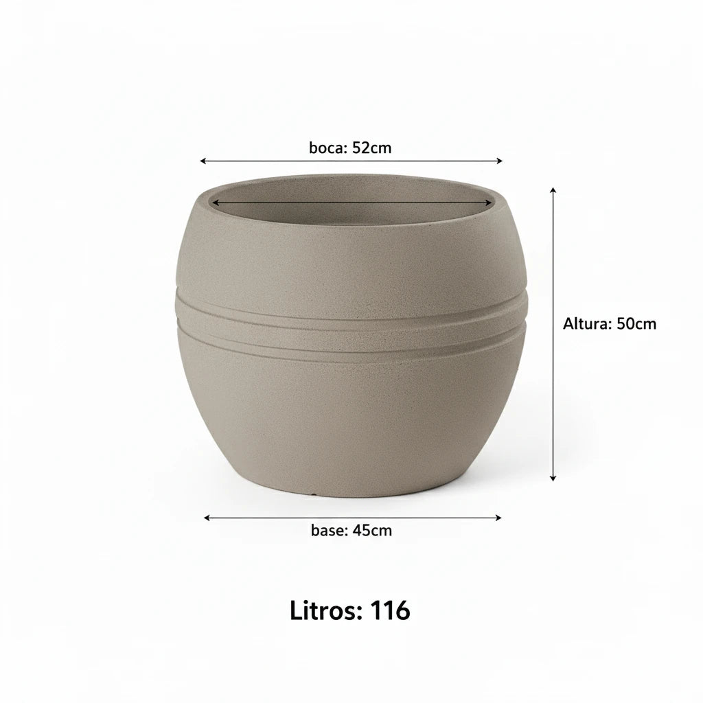 52 cm de diámetro superior, 50 cm de altura y 45 cm de base