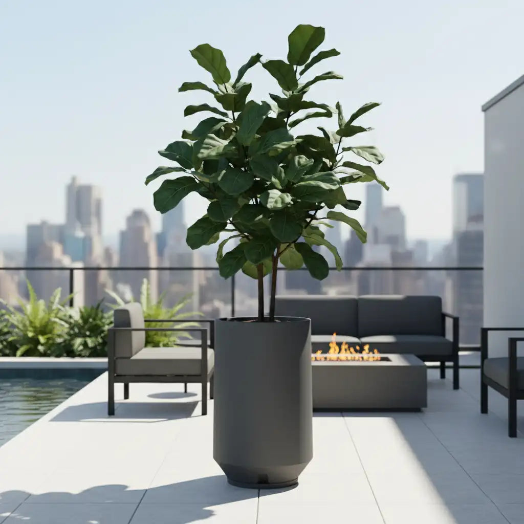 Diseño alto y estilizado, ideal para realzar plantas decorativas.