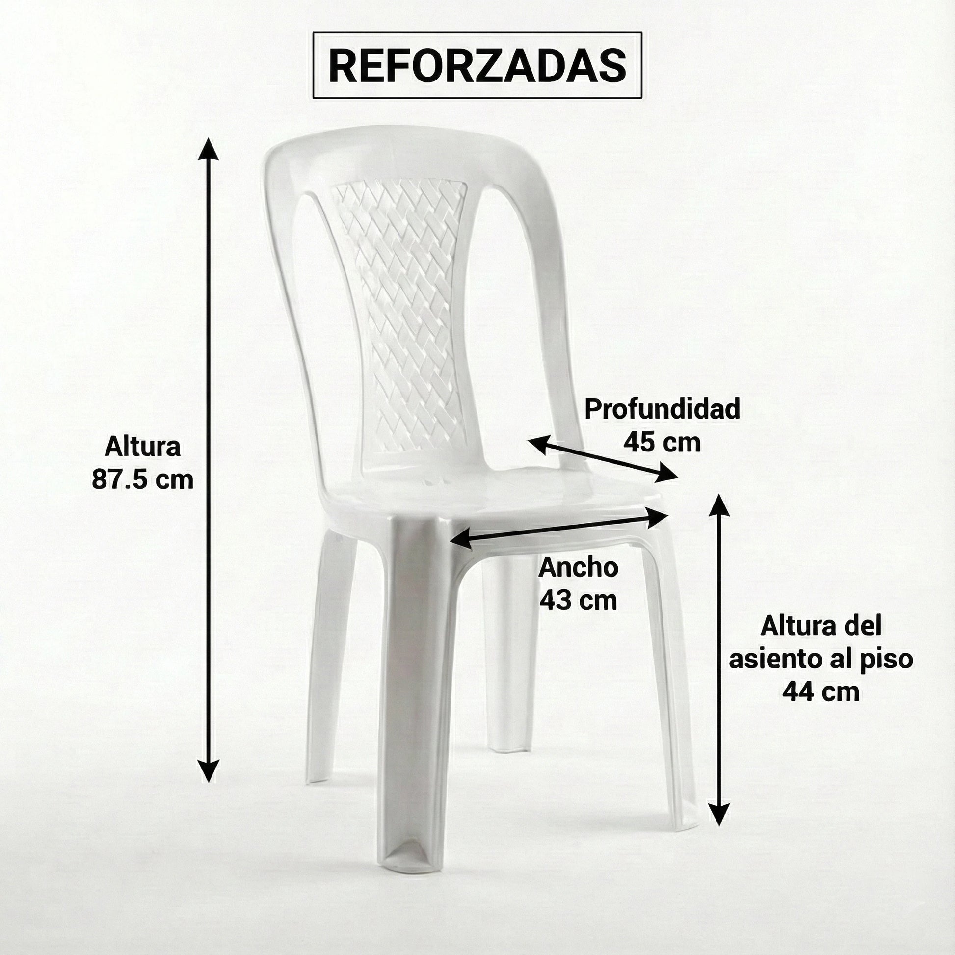 El Pack x10 de Sillas Ibiza es una opción práctica y resistente para equipar espacios de uso diario, tanto en interior como en exterior. Su diseño apilable permite ahorrar espacio al guardarlas, y su estructura reforzada las hace ideales para hogares, jardines, terrazas, parrilleros, eventos y comercios.