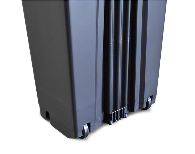 Tacho de basura rectangular de 60 L con pedal, ruedas y doble tapa. Práctico y resistente, pensado para residuos domésticos o institucionales.